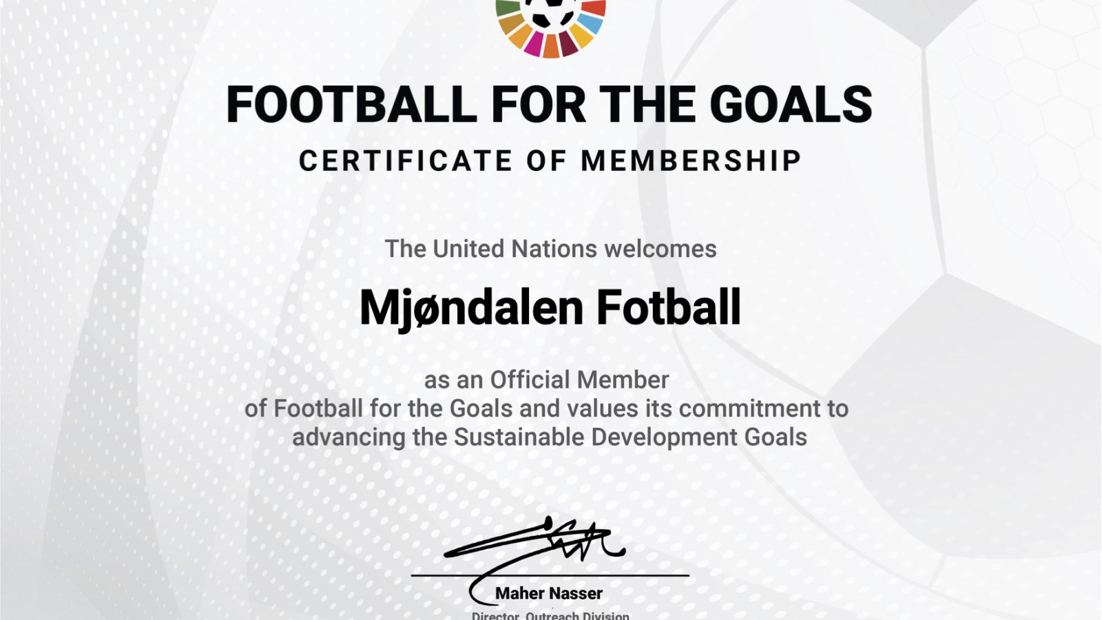 I dag ble Mjøndalen, som tredje klubb i Norge, akseptert som medlem av Football for the Goals. Fra før er Odd og Vålerenga godkjent som medlemmer, og på den ganske eksklusive listen med bare 33 klubber, figurerer Mjøndalen sammen med klubber som AFC Ajax, Feyenoord Rotterdam og IFK Gøteborg.